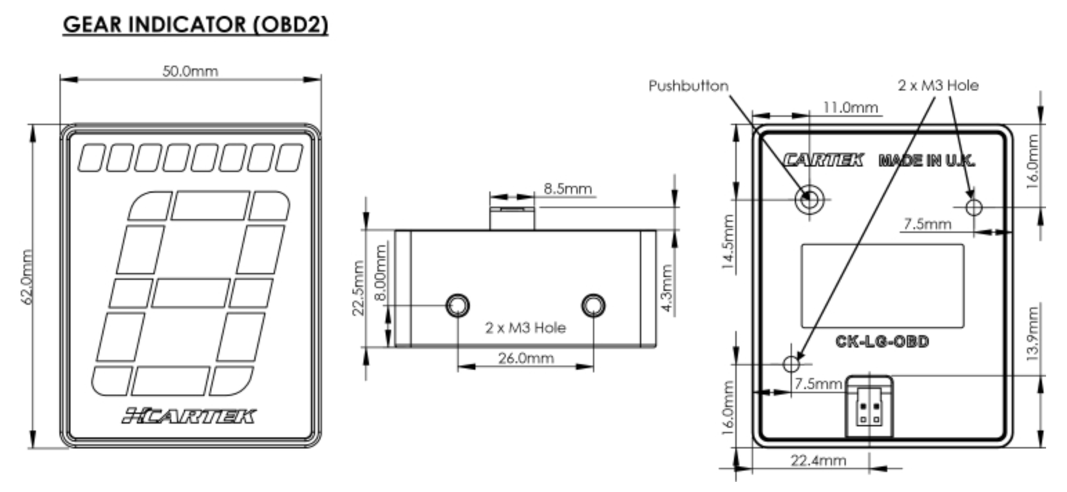 This version of the Gear Indicator can be plugged directly into the OBD2 port of the majority of vehicles fitted with this type of connector. It is supplied with a dedicated 1.5 meter OBD2 cable and connector so no additional wiring is necessary.